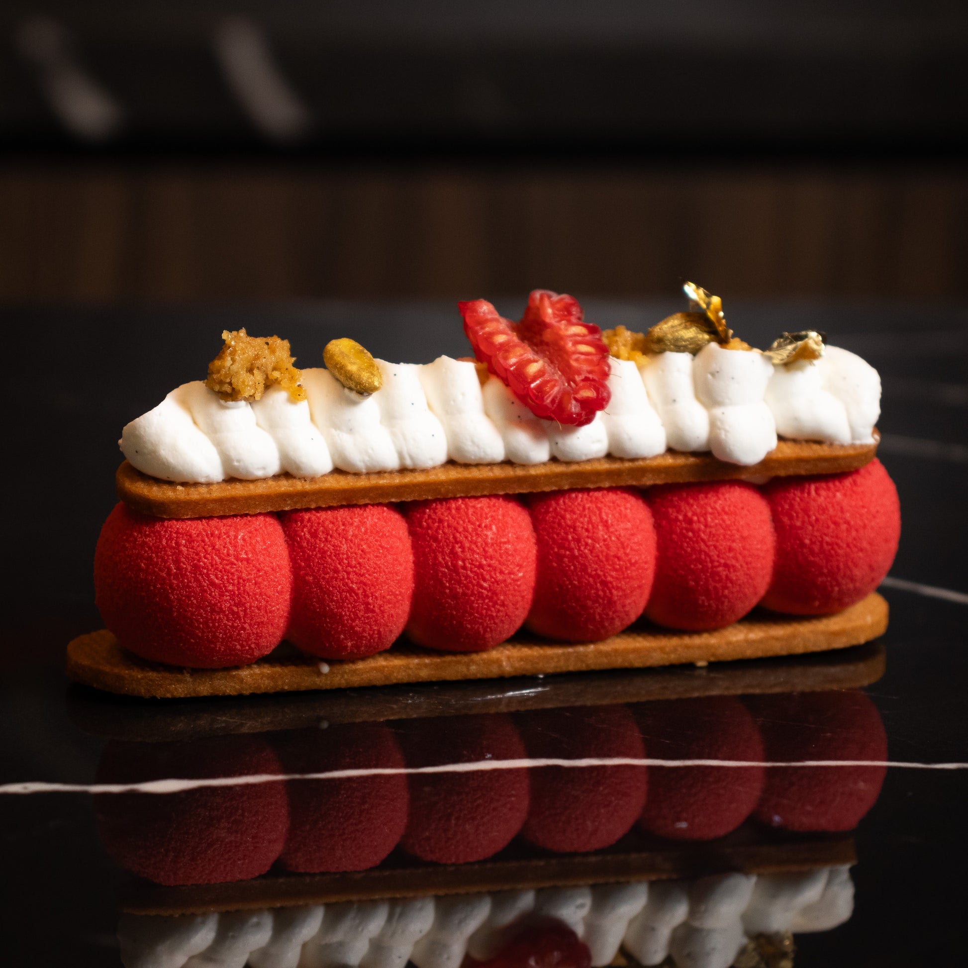 Déjate seducir por nuestro exquisito pastel individual de pistache y frutos rojos. Delicateza y sabor se combinan en cada bocado, transportándote a un mundo de lujo y exclusividad. Disfruta de la perfecta armonía entre el cremoso pistache y la intensidad de los frutos rojos. ¡Una experiencia única para tu paladar!